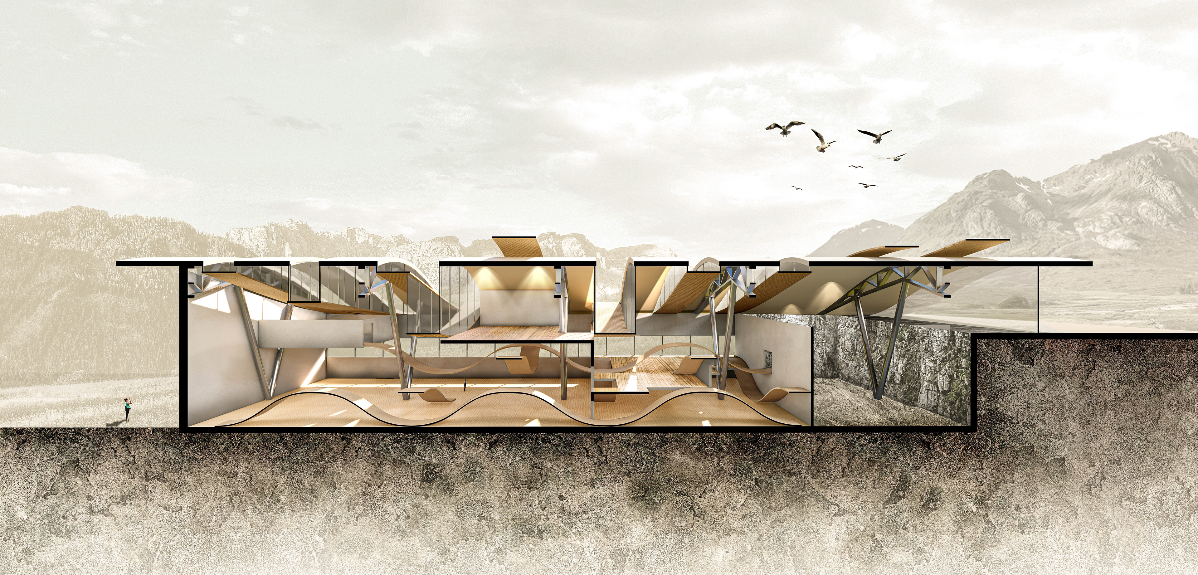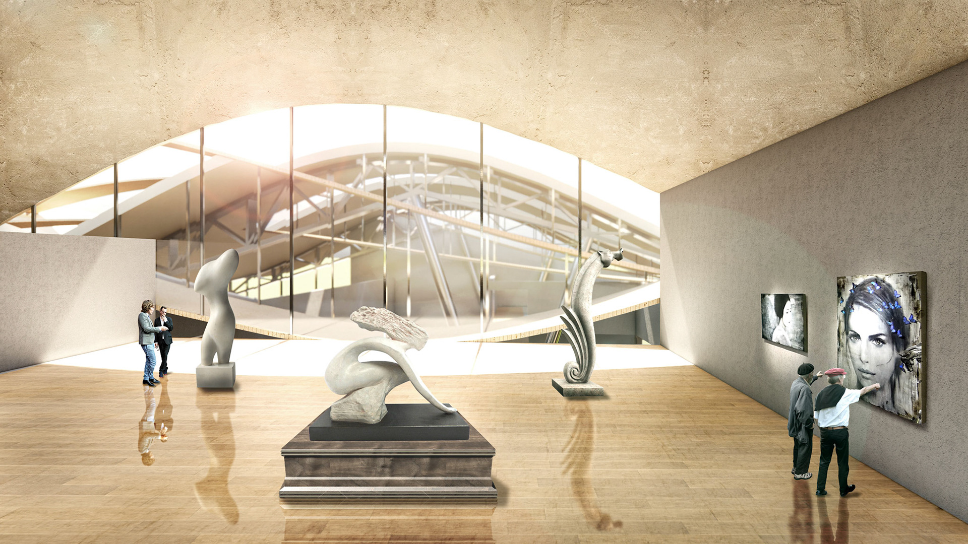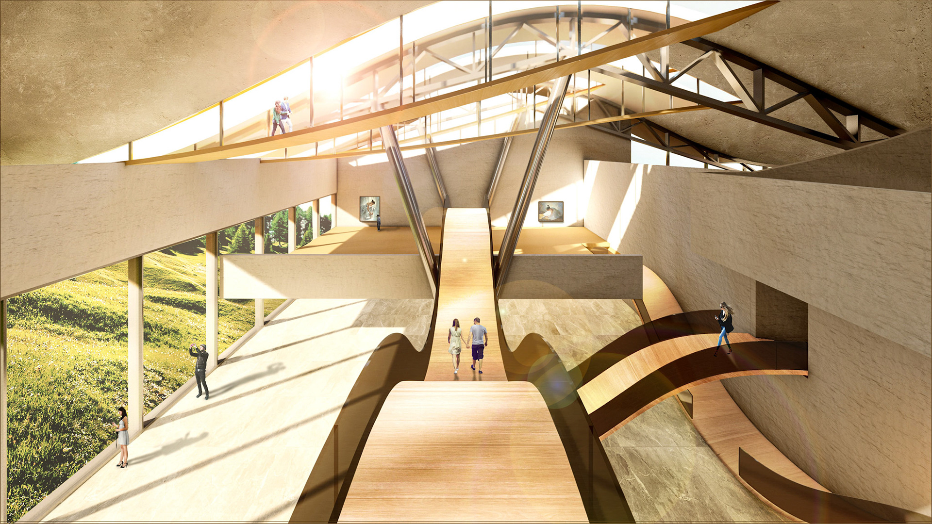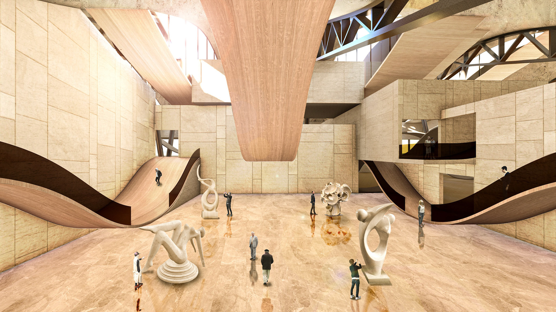 Wondering whether it is possible to use the “wave” element to create an interesting space, I start to think about how to put the idea into an art museum. There are three aims in this design. First, let visitors feel wave elements almost everywhere in this museum. Second, use wave elements to increase the relationship between interior and exterior. Third, create a more interesting exhibition experience through wave elements.